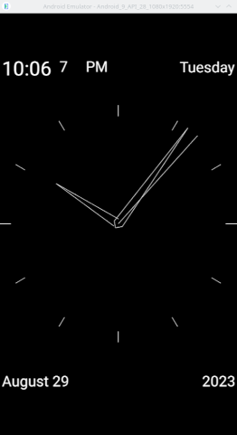 Always shows the time in the appropriate language Analogue and digital Is immediately visible even when the display is locked Requires extremely little memory and battery No setting options No alarm clock No internet access No data storage No permissions
